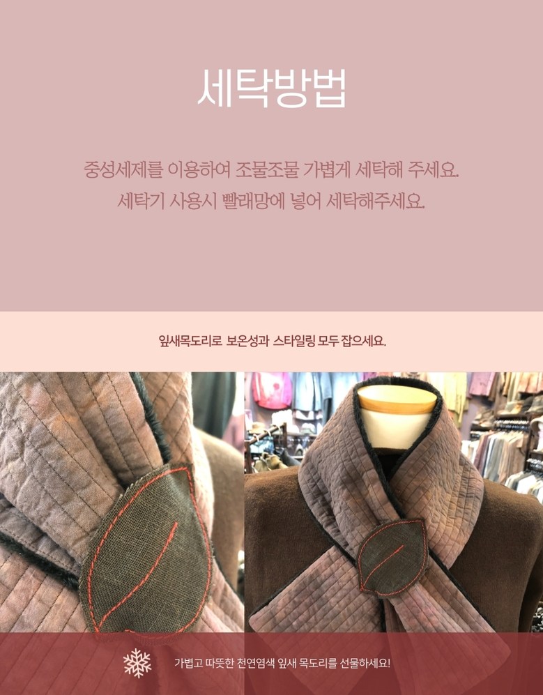 천연염색 잎새목도리 쁘띠 밍크목도리